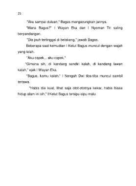 "Bagus, kamu kalah," I Nengah Dwi tiba-tiba muncul sambil