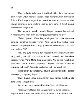 "Aku... aku suka meneliti dan kata guruku di sekolah aku anak